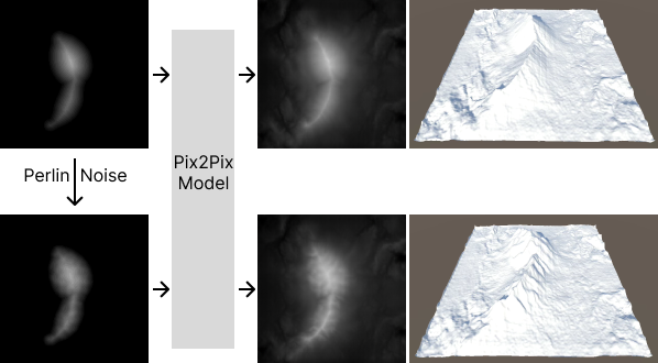 When using the built-in terrain tools from game engines like Unity and Unreal Engine, it always bothers me that the brushes from those tools feel too cartoonish, many features from terrain in real life, such as erosions, cannot be well presented by those tools. Using custom brushes or real life satellite height image, on the other hand, lack of creative controls. Thus, I have designed this system, mainly to tackle the problems of lacking realism from existing terrain tools, using the power of AI model. To maximize the creative control, I put the system in VR to give the users the ability to create any terrain with the shape they want in 3D without any topological constraints, tackling an existing problem.